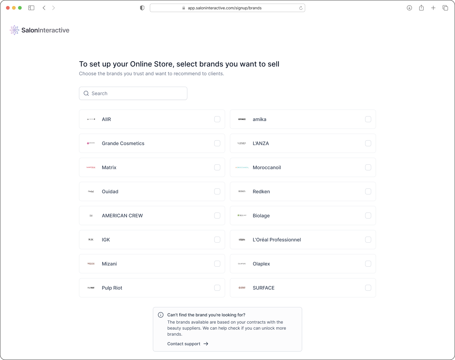 You can connect as many SI beauty suppliers as you want. Once connected, salon ordering will also be enabled for all professional brands available through participating service providers.